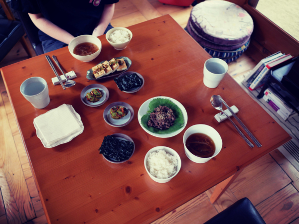 Da Essen sieht immerwieder fantastisch aus! Nur die Bodenstühle sind bestimmt gewöhnungsbedürftig. Was für eine schöne Geschmacks- und Farbenwelt, in die ihr da eintaucht…
