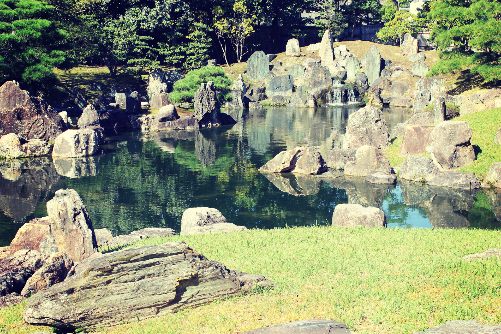 Also immer der netten Japanerin mit der Fahne hinterher: Nijo Castle, Goldener Pavillion, Kaiserpalast in Kyoto (In 4er Reihen antreten, keine Häuser anfassen, nicht aufs Moos treten – „Or you’ll get scolded by the palace police guards!“, auch wenn leichtes Nordkorea-Feeling aufkommt halten wir uns dran, denn Ärger mit dem Kaiser will ja keiner), danach Vegetarisches Mittagessen mit Huhn und Scampi (der Koch hat wohl Ninja-Skills, denn vegetarisch Kochen mit Fleisch ist echt nicht so einfach!), Emma bekam allerdings nur Gemüse – ätsch!. Nachmittags gings noch von Kyoto nach Nara: Kasuga Shrine und Todai-ji Temple Complex – das hab ich vor lauter Jetlag aber nur noch bruchstückhaft in Erinnerung, vielleicht weiss Emma noch was -Emma!? Anti-Jet-Lag-Plan zu 50% erfüllt, na immerhin.