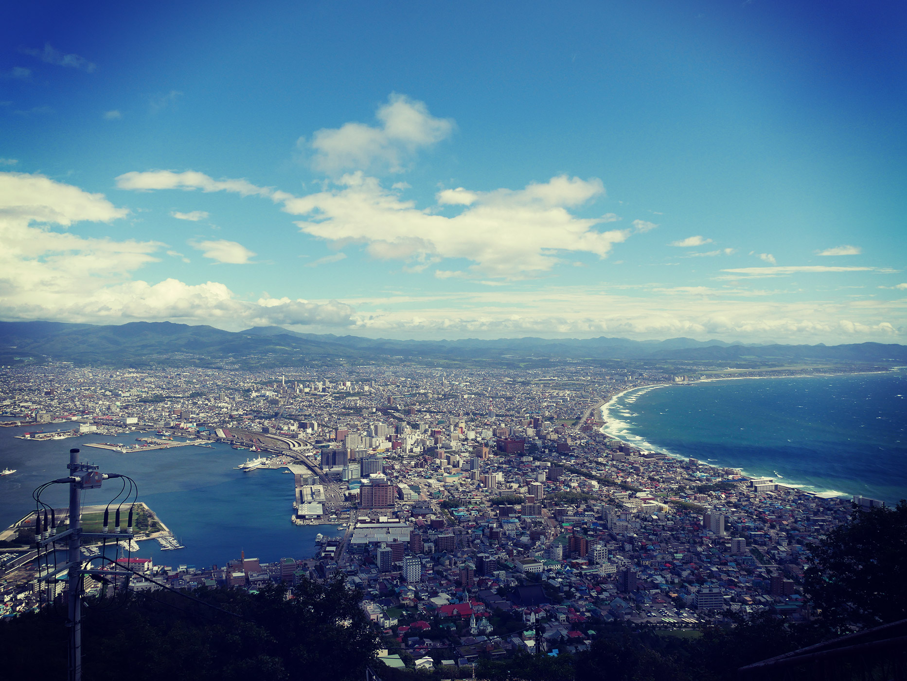 Heute geht’s mit Seilbahn auf den Mount Hakodate, die 100-Menschen-Maximalfüllung der Kabine wird planmäßig mit etwas drücken und schieben erreicht. Ich habe fast Kreislaufkoller, Emma hat Spass. Sie mögen es halt kuschelig hier.