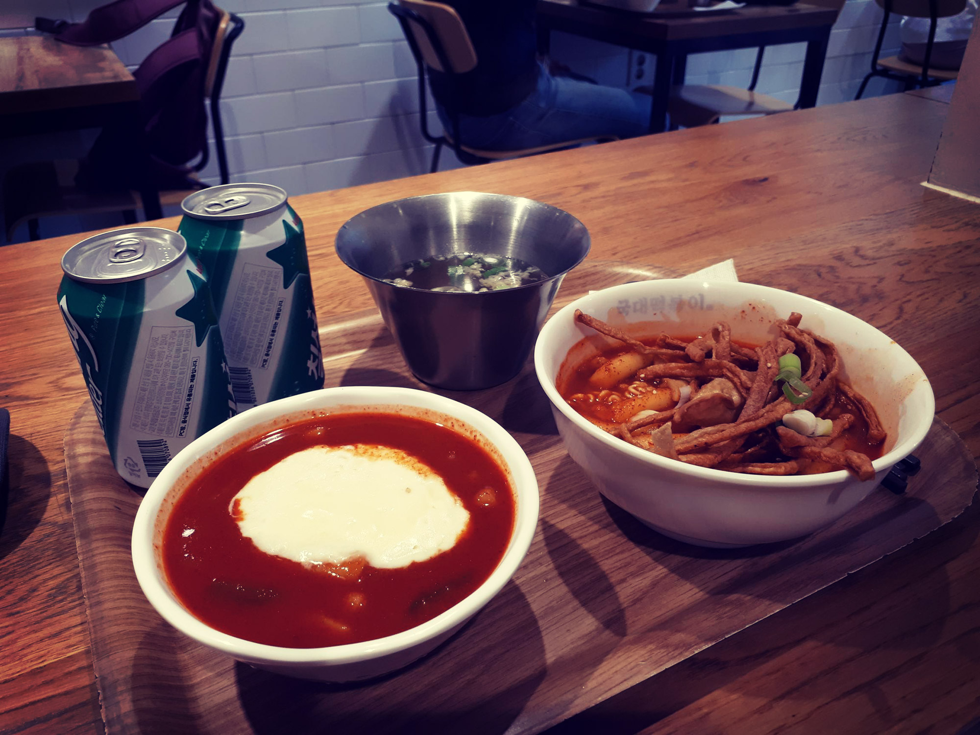 Mittags gabs unterwegs Spicy Ricecakes (떡볶이). Die trieben Emma die Tränen in die Augen und liessen meinen Verdauungstrackt den Rest des Tages unentschlossen bis hysterisch zwischen Sprühstuhl und Flüssigwurst mäandern (ging aber alles gut 🙂 ). Lecker war’s!