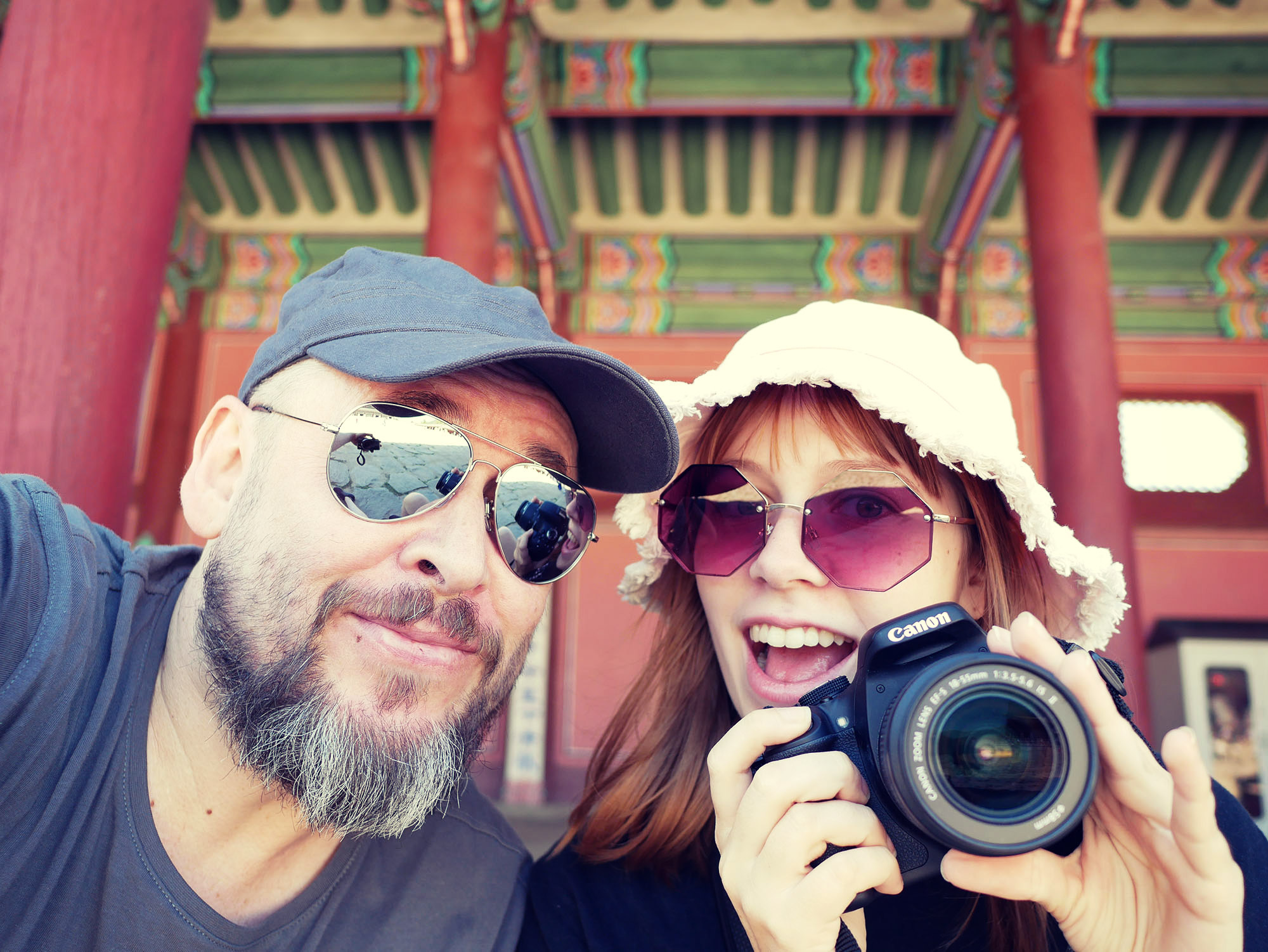 Heute ging es in den Gyeongbokgung (경북궁) Palace und auch wenn wir von einem ziemlich professionell-frechen Fake-Mönch am Eingang abgezockt wurden, hat uns das die Laune am Tag nicht verdorben. Es gab ja immerhin schicke Armbändchen und „lifetime-peace“ dazu – kann man nicht meckern. Selbst betrogen werden macht uns heute Spass 🙂
